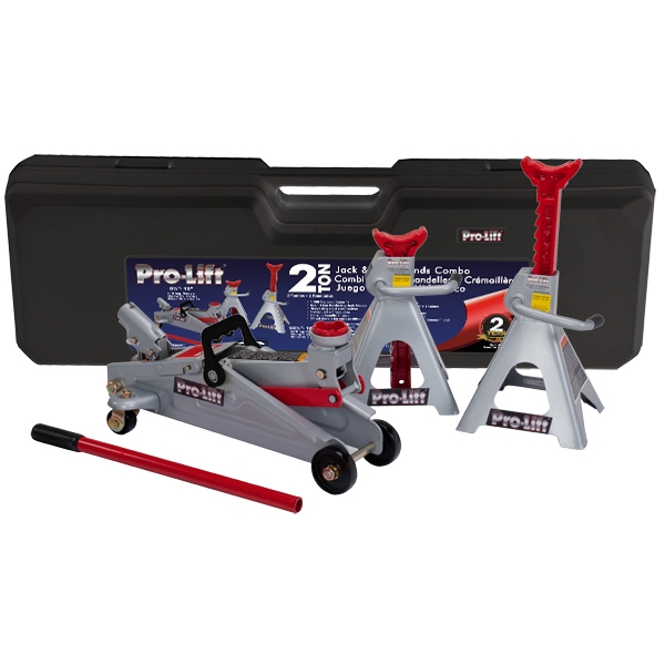 - A great combo kit including a 2 Ton jack and 2 Two Ton jack stands in a blow mold carry case. This kit is easy to transport, and simple to store. If your shop is mobile, this kit is definitely for you!